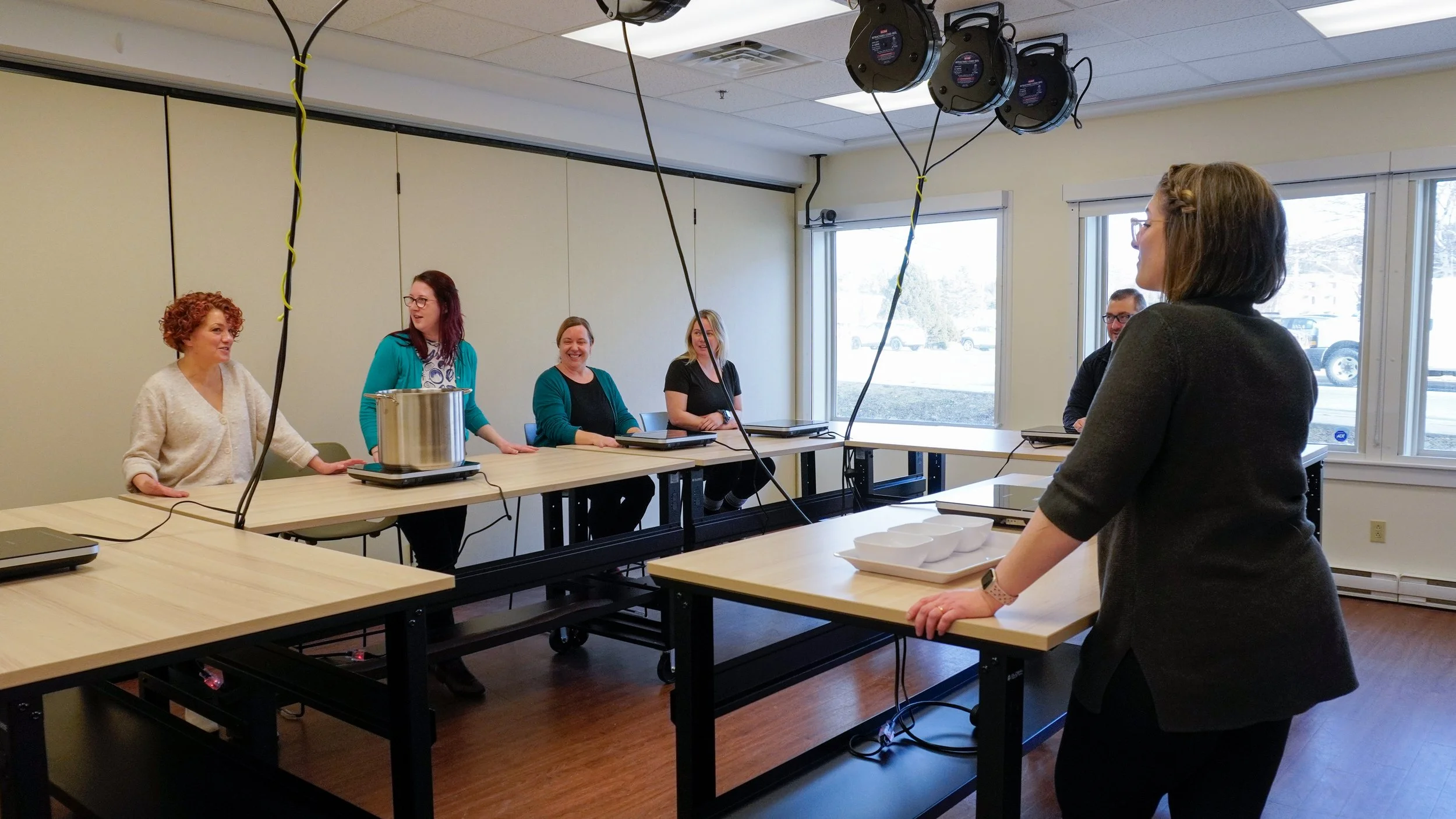 Our Table includes a flexible community space with a teaching kitchen. The space can be used for workshops, training sessions, meetings, meals, and community events.